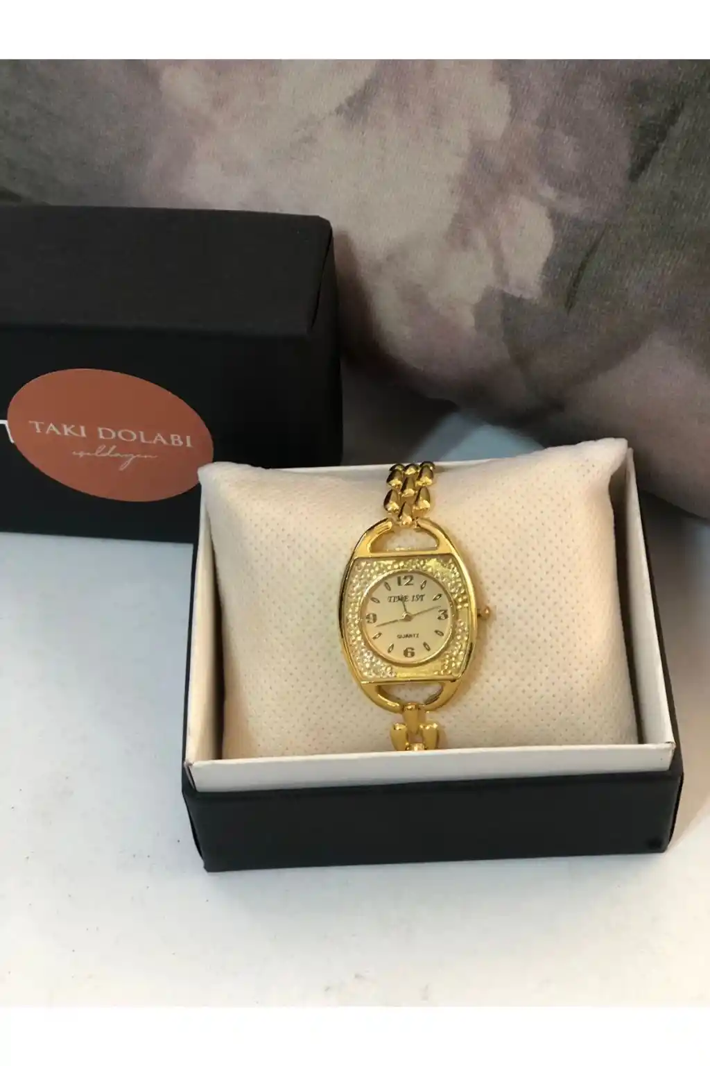 - Zarif tasarımıyla dikkat çeken bu kadın saati, günlük kullanım için idealdir.; - Altın kasa materyali ile şıklığınızı tamamlar ve uzun süreli dayanıklılık sunar.; - Gençlerin enerjisini yansıtan modern görünümüyle her ortamda stil sahibi olmanızı sağlar.; - Mekanizması sayesinde zamanı kolayca takip edebilirsiniz; analog saat severler için mükemmel bir seçimdir.; - Metal kordon materyali hem konforlu bir kullanım sunar hem de dayanıklılığı artırır