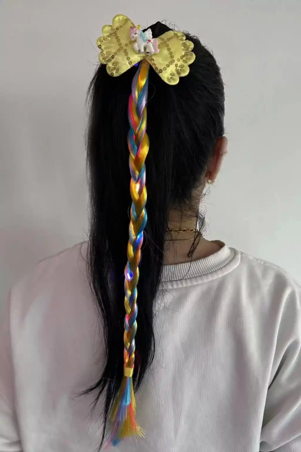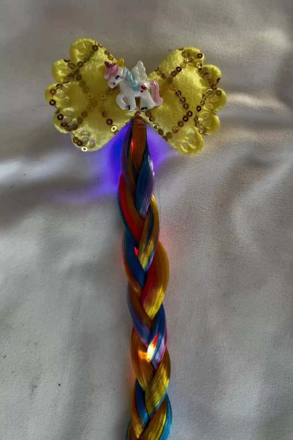 Sarı Renk Unicorn Figürlü Örgü Saç Detaylı Işıklı Toka ile saçlarınıza hareket katacak ve farklı bir tarz yaratacaksınız.