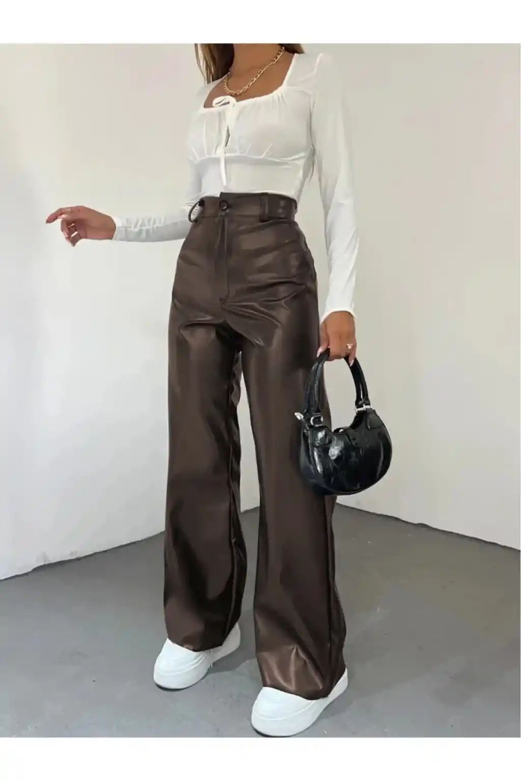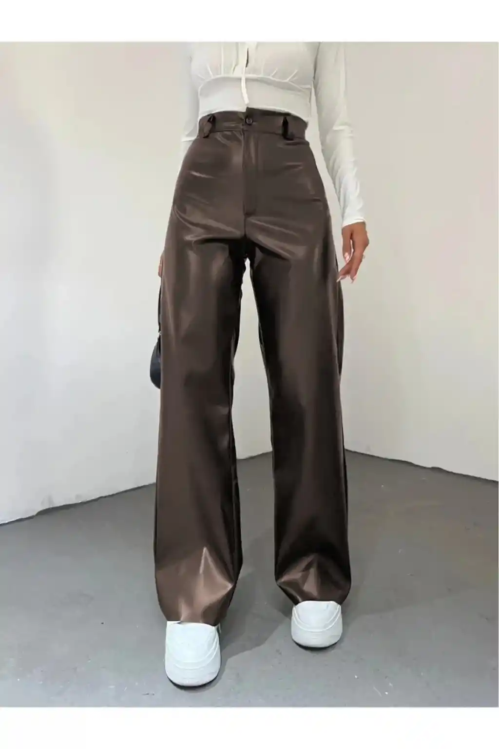 Şardonlu suni deri pantolon - Yüksek bel tasarımı sayesinde konforlu bir kullanım sunar ve vücut hatlarını zarifçe sarar.; - Suni deriden üretilmiş kumaşı, dayanıklılığı ve şık görünümü ile dikkat çeker.; - Belirtilmemiş boyu, farklı vücut tiplerine uyum sağlayarak her kullanıcıya hitap eder.; - Düz deseniyle sade ve zamansız bir stil oluşturur, çeşitli üst giyim parçalarıyla kolayca kombinlenebilir.; - Yetişkin kadın ve kızlar için uygun tasarımıyla geniş bir kullanıcı yelpazesine hitap eder.