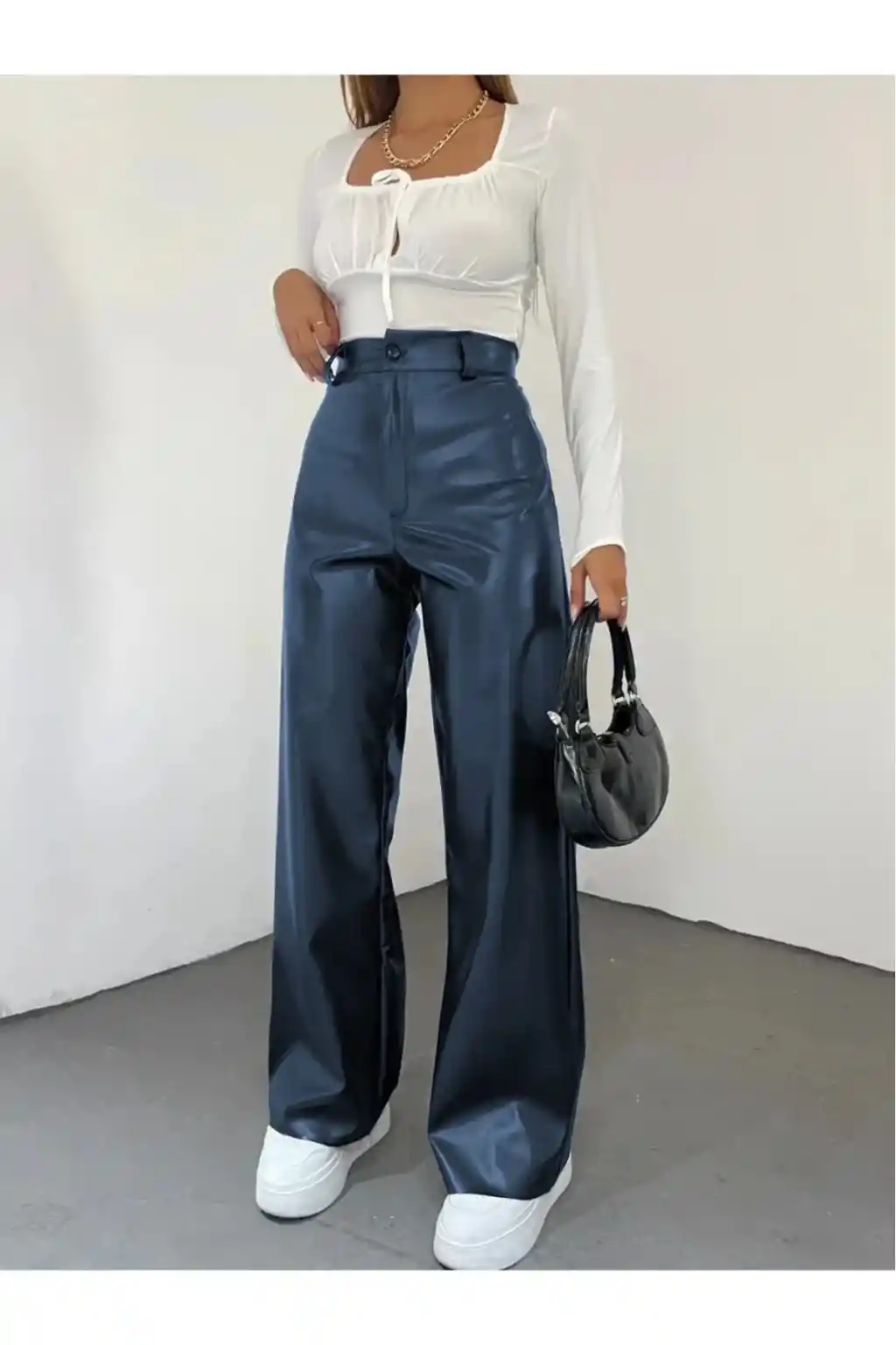 Şardonlu Suni Deri Pantolon - Yüksek bel tasarımı sayesinde konforlu bir kullanım sunar ve vücut hatlarını zarifçe sarar.; - Suni deri kumaşı, dayanıklılığı ve şık görünümü ile dikkat çeker.; - Belirtilmemiş boyu, farklı vücut tiplerine uyum sağlayarak her kullanıcıya hitap eder.; - Düz deseniyle sade ve zamansız bir stil oluşturur, günlük kombinlerinizde kolayca yer bulur.; - Yetişkin kadın ve kızlar için uygun tasarımıyla geniş bir kullanıcı yelpazesine hitap eder.; - Günlük ortamlarda rahatlıkla tercih edilebilecek pratik ve şık bir seçenektir.