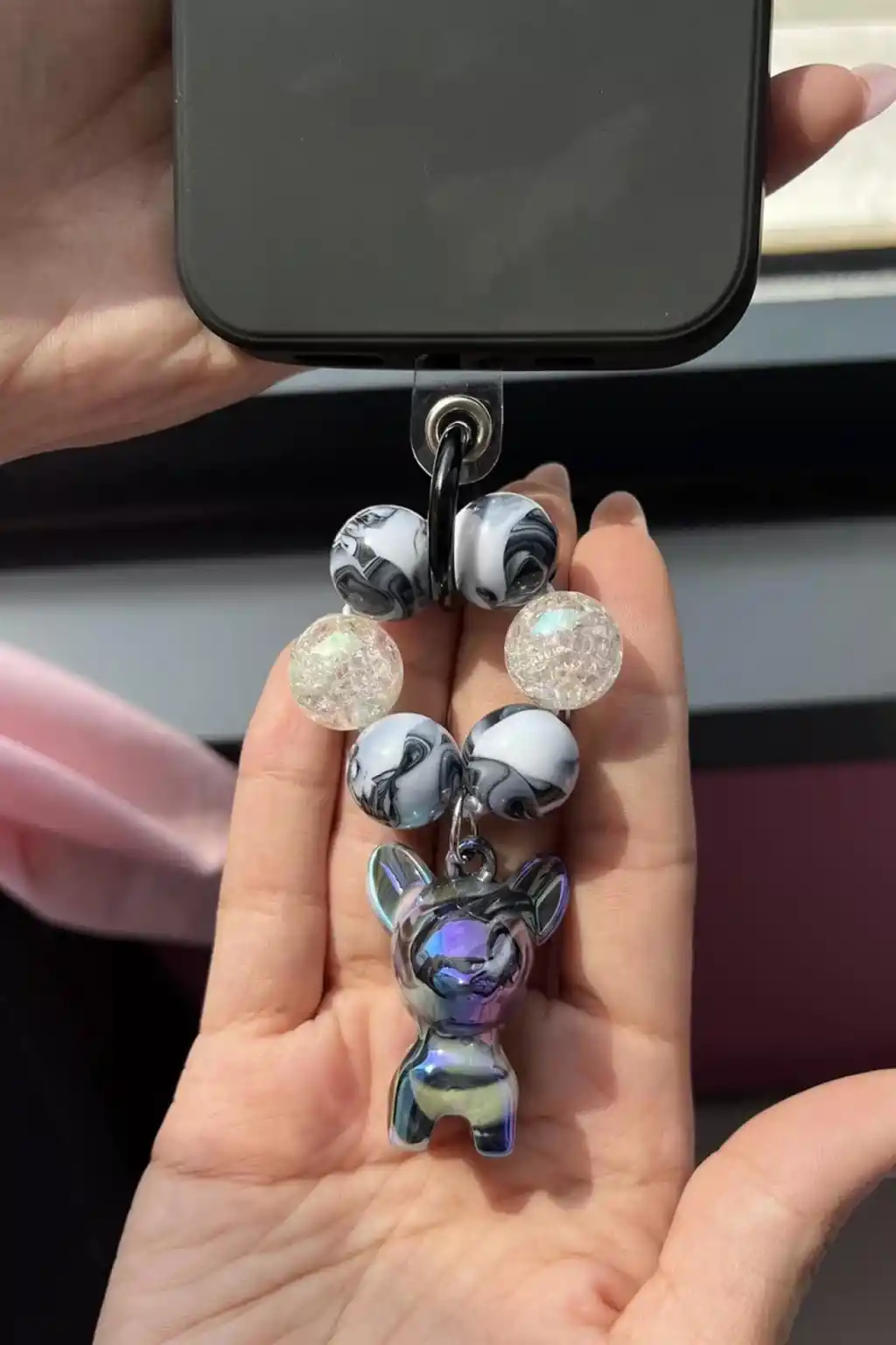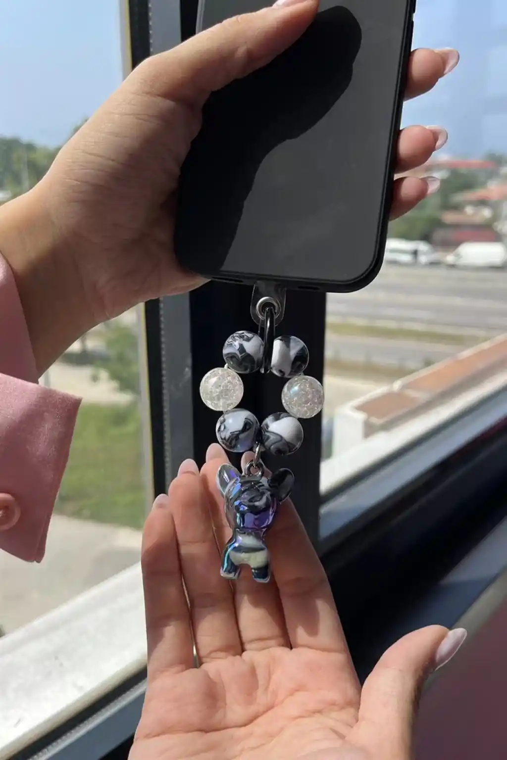 Siyah Renk Boncuklu Telefon Aksesuarı, telefonunuza şıklık ve koruma sağlayacak harika bir seçenektir.