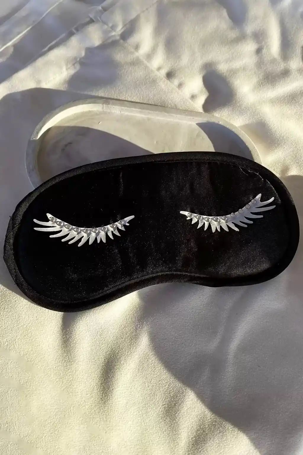 Uykuya dalarken şıklık ve konforun buluştuğu Siyah Renk Kirpik Figürlü Taşlı Uyku Bandı ile rahat bir uykuya hazır olun.