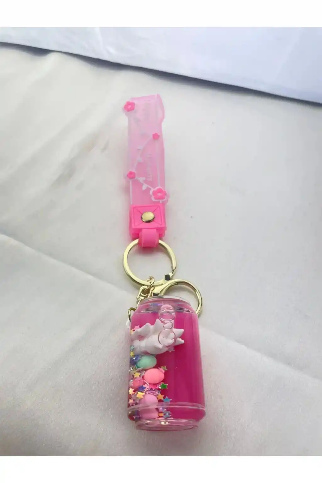 Pembe Renk Unicorn Figürlü Simli Cep Ayna Anahtarlık