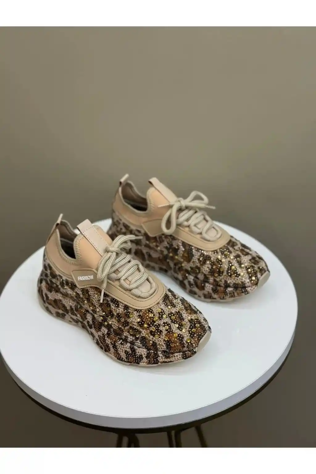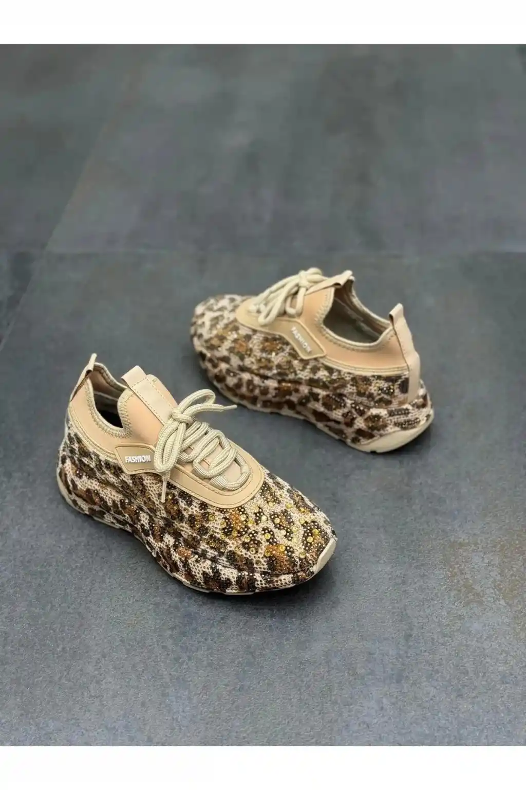 Şıklığı ve konforu bir arada sunan Taşlı Leopar Kadın Spor Ayakkabı, kadınların spor şıklığına farklı bir hava katıyor.
