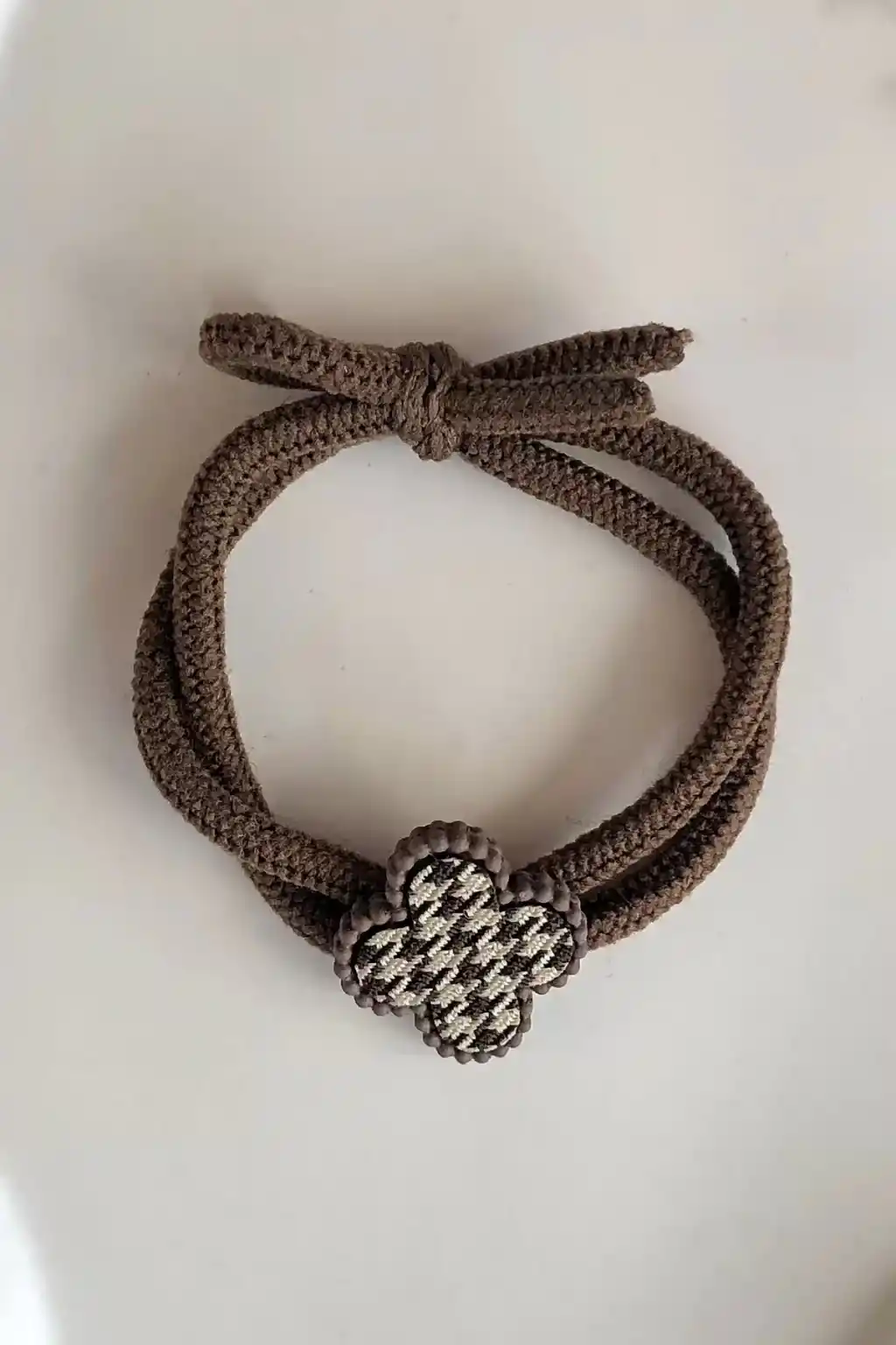 Saçınıza zarar vermeden sabitlenen Tekli Kahverengi Renk Yonca Figürlü Lastik Toka ile şıklığınızı tamamlayarak her ortamda öne çıkabilirsiniz.
