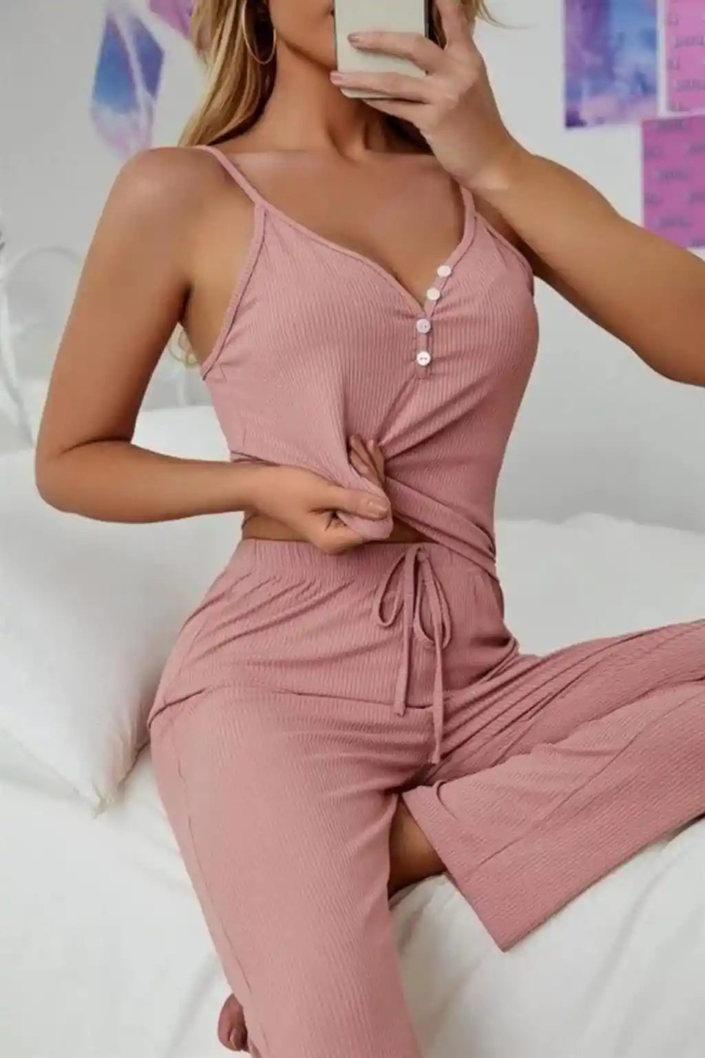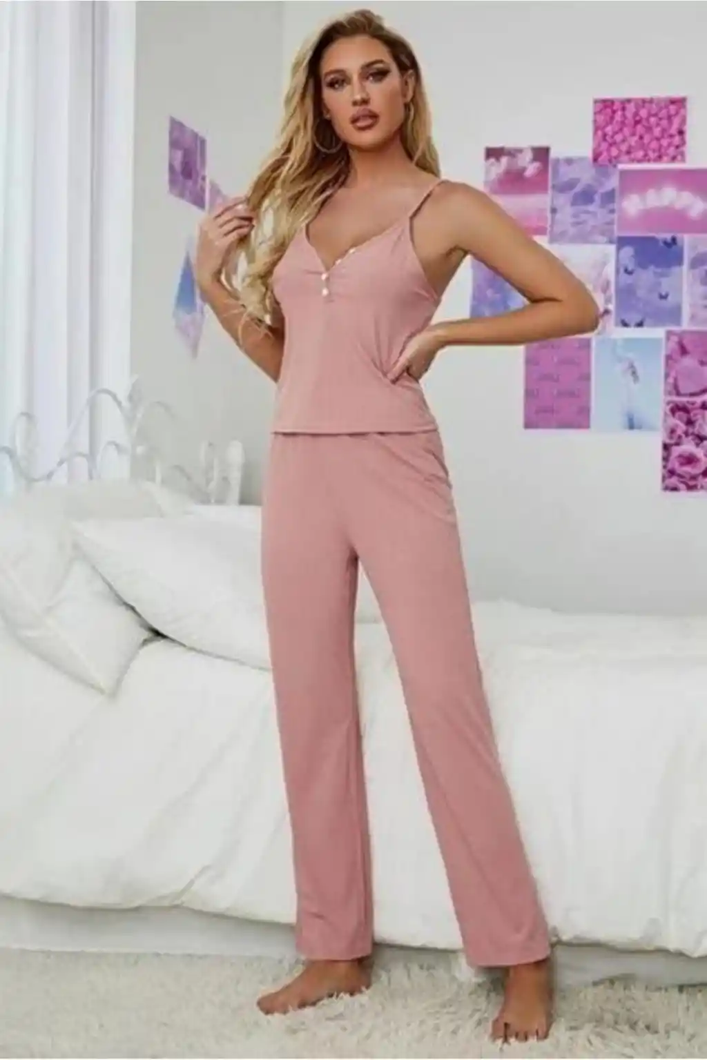 - Zarif tasarımıyla dikkat çeken viskon pudra düğme detaylı ikili takım, gençlerin enerjisini yansıtır.; - Kadın ve kız çocukları için özel olarak tasarlanmış bu takım, şıklığı ve rahatlığı bir arada sunar.; - Belirtilmemiş kumaş tipi sayesinde farklı dokulara uyum sağlayarak her ortamda konforlu bir kullanım imkanı tanır.; - Balık kalıbı ile vücut hatlarını nazikçe sararak feminen bir siluet oluştururken, düz deseniyle zamansız bir tarz sunar.; - Uzun boy kesimi sayesinde hem günlük kullanımda hem de özel günlerde ideal bir seçim olup, şık duruşunu korur.; - Türkiye menşeli olmasıyla yerel üretim avantajlarından faydalanırken, kaliteli malzemelerle üretilmiş olmanın güvenini taşır.