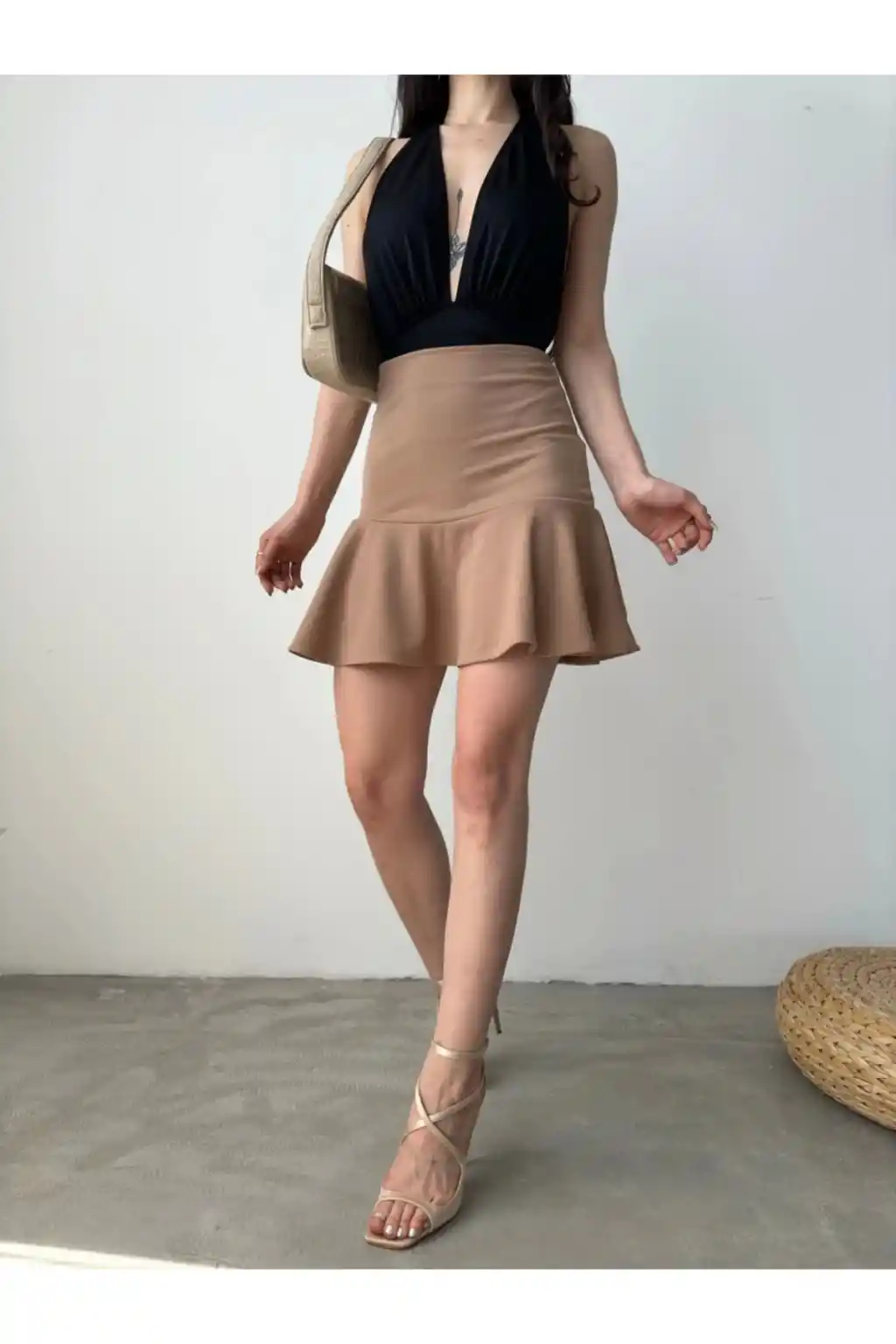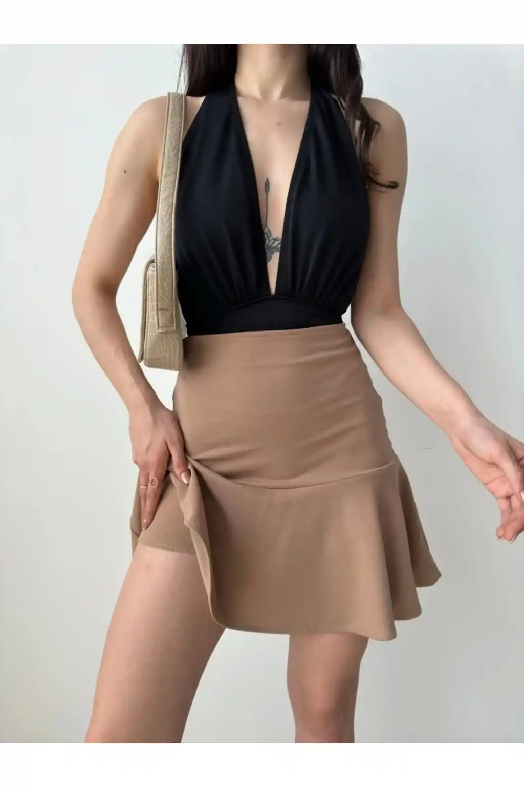 Gündüzden geceye her ortama uyum sağlayan, zamansız tasarımıyla dikkat çeken volanlı krepe şort etek.; Mini boy kesimiyle genç ve dinamik bir siluet sunan bu etek, hareket özgürlüğünüzü kısıtlamaz.; Likra materyali sayesinde esnek yapısıyla vücut hatlarınıza mükemmel uyum sağlar ve konforlu bir kullanım sunar.; Düz deseniyle sade ve şık görünümü tercih edenler için idealdir; her türlü üst giyimle kolayca kombinlenebilir.; Orta kalınlığındaki kumaşı mevsim geçişlerinde idealdir; serin tutar ama üşütmez.; Slim kalıbı sayesinde modern ve zarif bir siluet çizerken, vücut hatlarınızı nazikçe sarar.; Dokuma kumaş tipi dayanıklılık ve uzun süreli kullanım vaat ederken aynı zamanda yumuşak dokusuyla teninizde rahatlık sağlar.;
