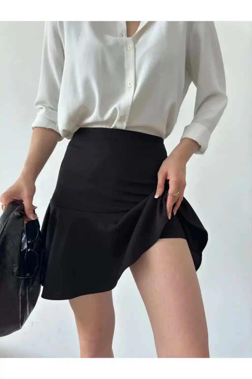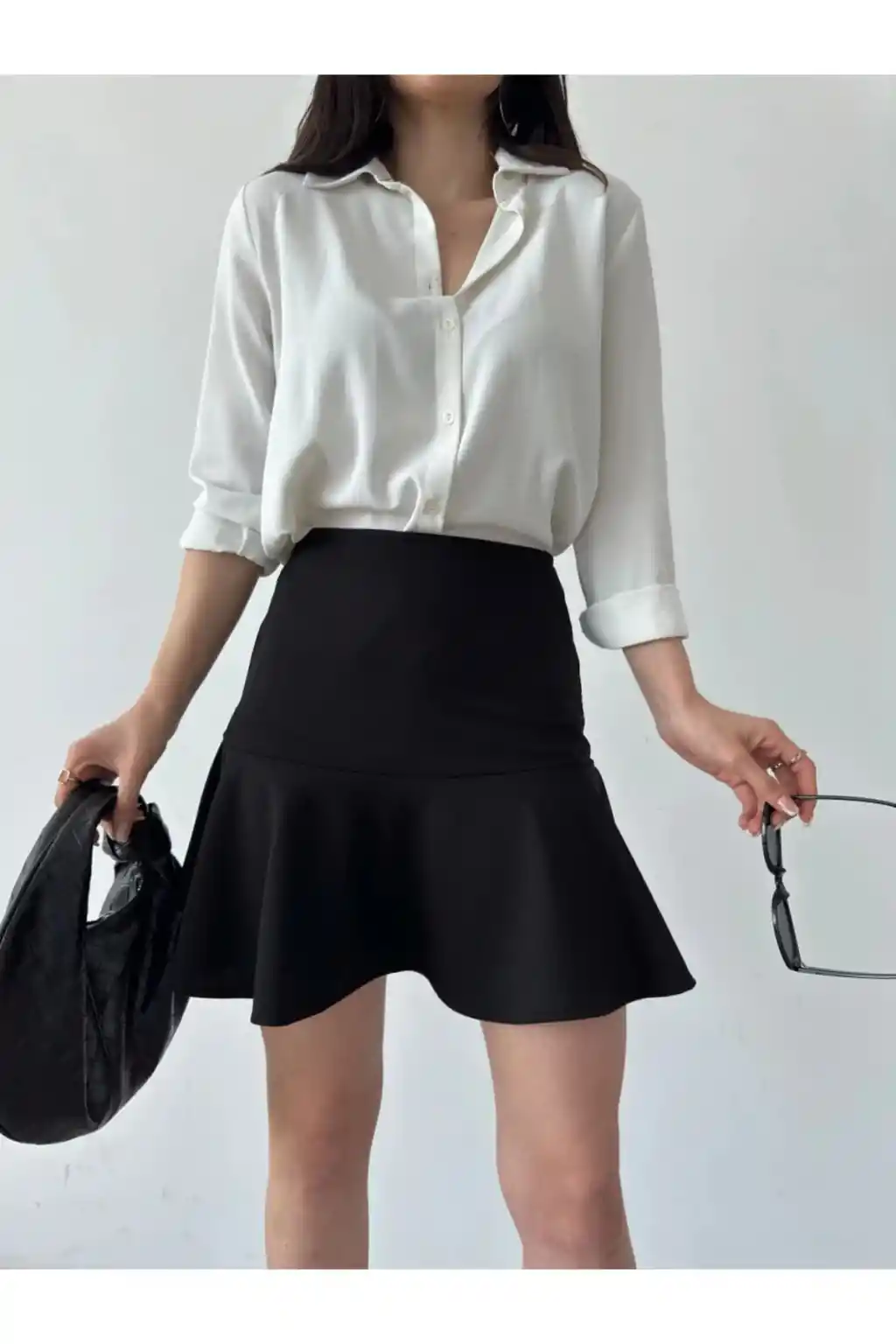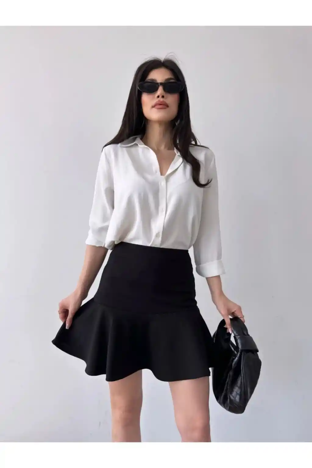 Gündüzden geceye her ortama uyum sağlayan, zamansız tasarımıyla dikkat çeken volanlı krepe şort etek.; Mini boy kesimiyle genç ve dinamik bir siluet sunan bu etek, hareket özgürlüğünüzü kısıtlamaz.; Likra materyali sayesinde esnek yapısıyla vücut hatlarınıza mükemmel uyum sağlar ve konforlu bir kullanım sunar.; Düz deseniyle sade ve şık görünümü tercih edenler için idealdir; her türlü üst giyimle kolayca kombinlenebilir.; Orta kalınlığındaki kumaşı mevsim geçişlerinde idealdir; serin tutar ama üşütmez.; Slim kalıbı sayesinde modern ve zarif bir siluet çizerken, vücut hatlarınızı nazikçe sarar.; Dokuma kumaş tipi dayanıklılık ve uzun süreli kullanım vaat ederken aynı zamanda yumuşak dokusuyla teninizde rahatlık sağlar.;