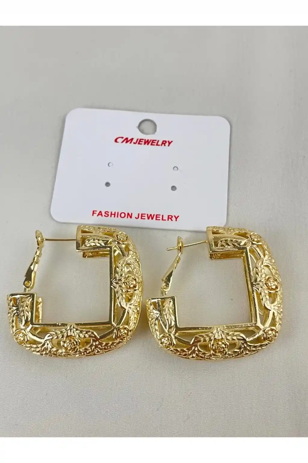 Altın Renk Çiçek Figürlü Çelik Küpe (Çift)