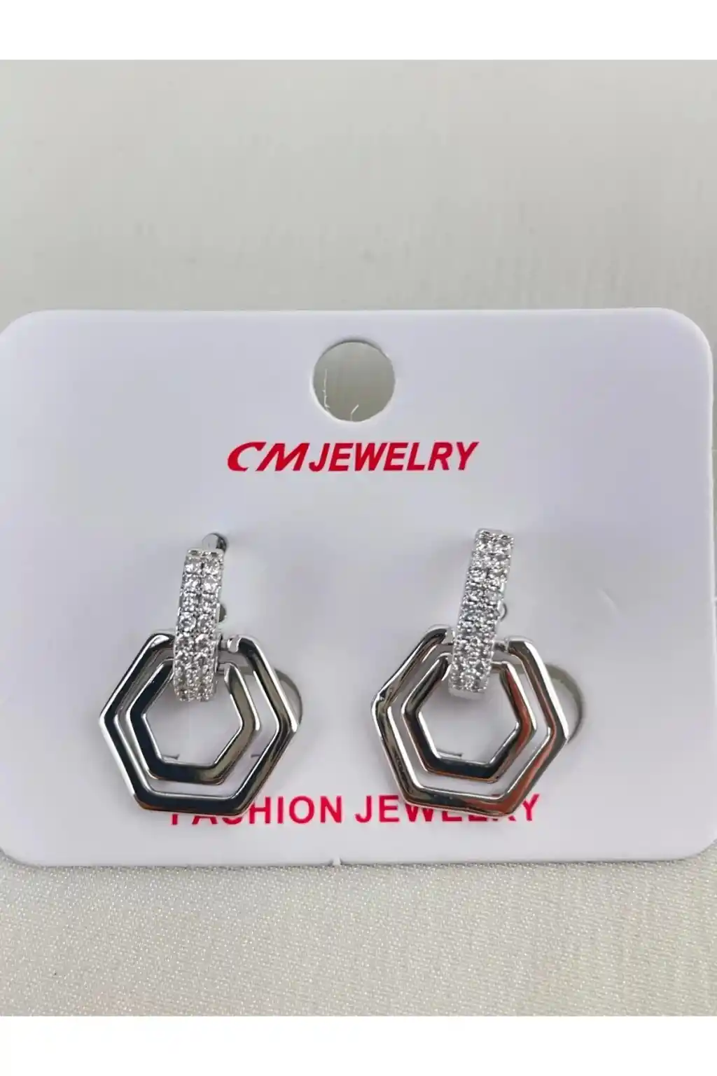 Karışık Renk Taş Detaylı Metal Küpe (Çift)