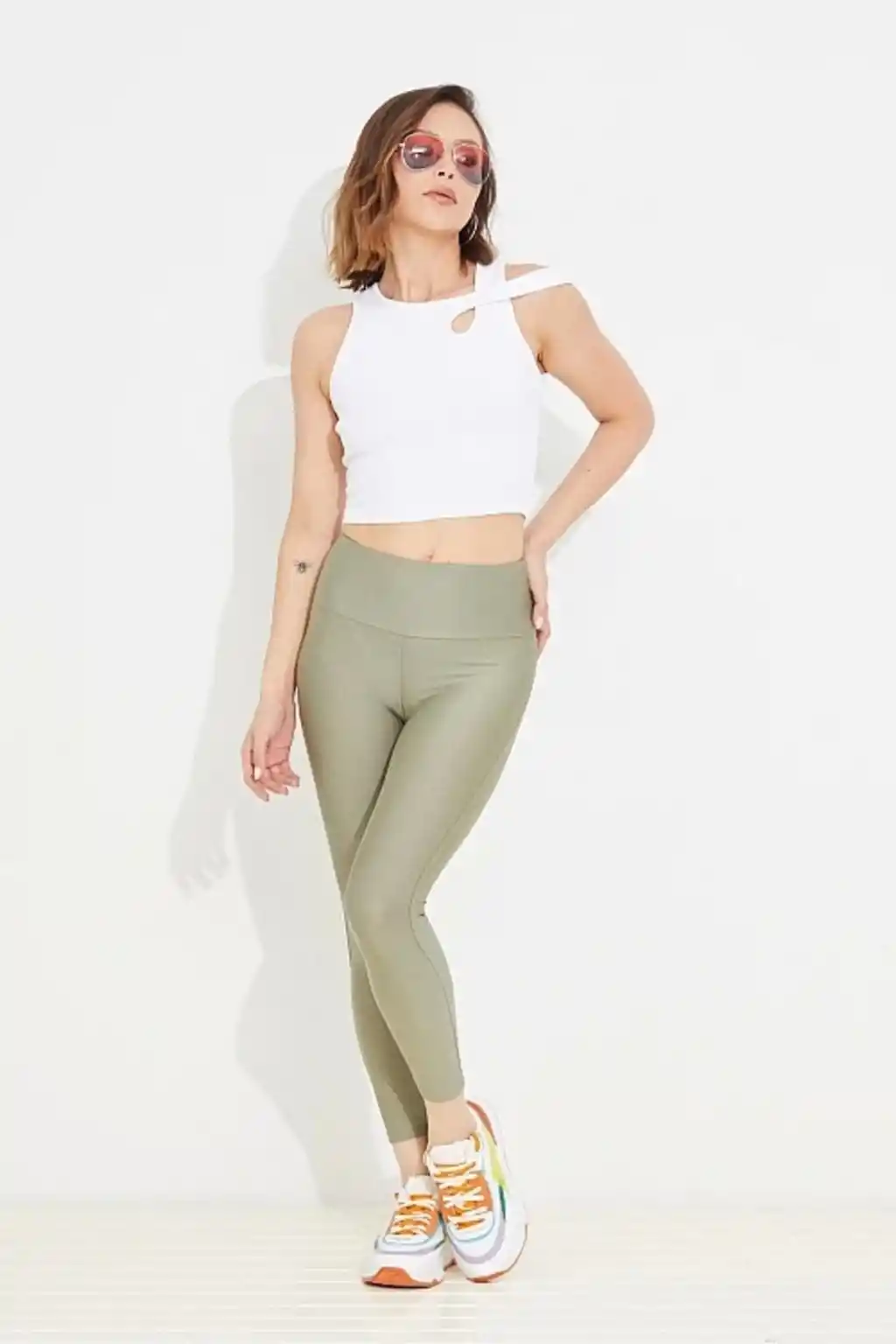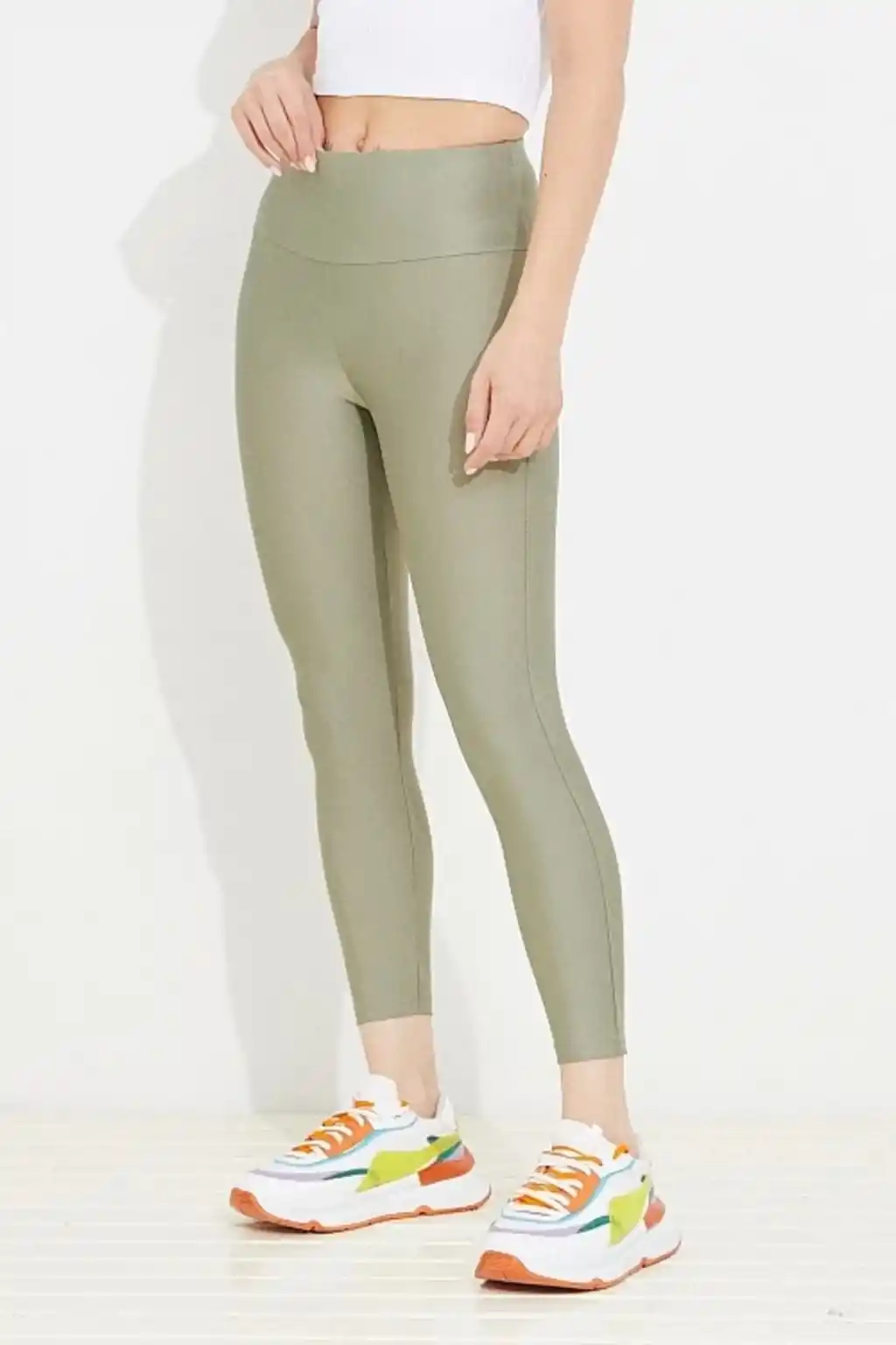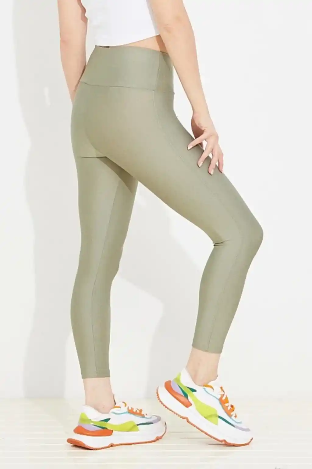 Ekstra Yüksek Bel Fitilli İçi Şardonlu Ottoban Tayt HAKİ